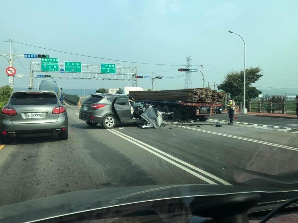 有網友在臉書不公開社團「爆料公社」貼出照片,語重心長地表示:「保重….阿彌陀佛」。從照片中可以看到,銀色休旅車橫置在車道上,不僅車身近乎半毀,連車頭也面目全非,讓路過民眾不忍卒睹。