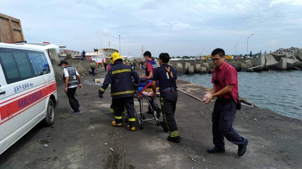 屏東縣政府東港消防分隊獲報後趕抵現場,並發現蔡男人在堤防外下方1.5公尺的消波塊上待援,其右小腿嚴重骨折,鮮血直流,表情相當痛苦,但高低差也造成救援困難,最後出動7人,先將蔡男包紮固定後用搬運毯將他抬回堤防送醫。