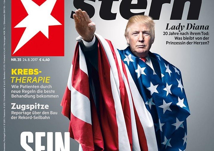 美國總統川普因為未對維州「白人至上」暴力事件加以譴責,且又特赦了歧視拉美裔的亞利桑那州前警長阿帕歐(Joe Arpaio),被外界視為是「助長種族歧視歪風」的人選。德國知名周刊於近日PO出了新封面照,卻是川普披上美國國旗行「納粹禮」的畫面,引起了不小爭議。