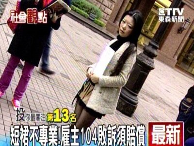 長腿美女趙欣禾2年前接受104人力公司派遣至台灣微軟擔任業務管理員,到職僅1個多月即遭微軟提前解聘,趙女指控,解聘原因是她的服裝「不專業」、「裙子太短」與微軟形象不符;台北地方法院簡易庭判決104敗訴,必須支付趙女剩下4.5個月薪水33萬元,二審認定雙方屬於特定工作契約,派遣終止契約即告終止,改判趙女敗訴。
