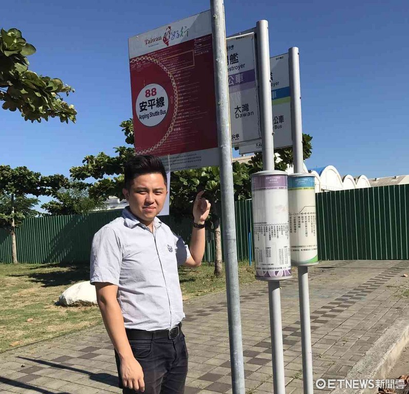 位於台南市安平億載金城西邊,靠近德陽艦的88號公車站牌太低,影響在人行步道運動的安全,市議員李文正和特助李啟維會勘之後,馬上連絡交通局公車處儘速改善。