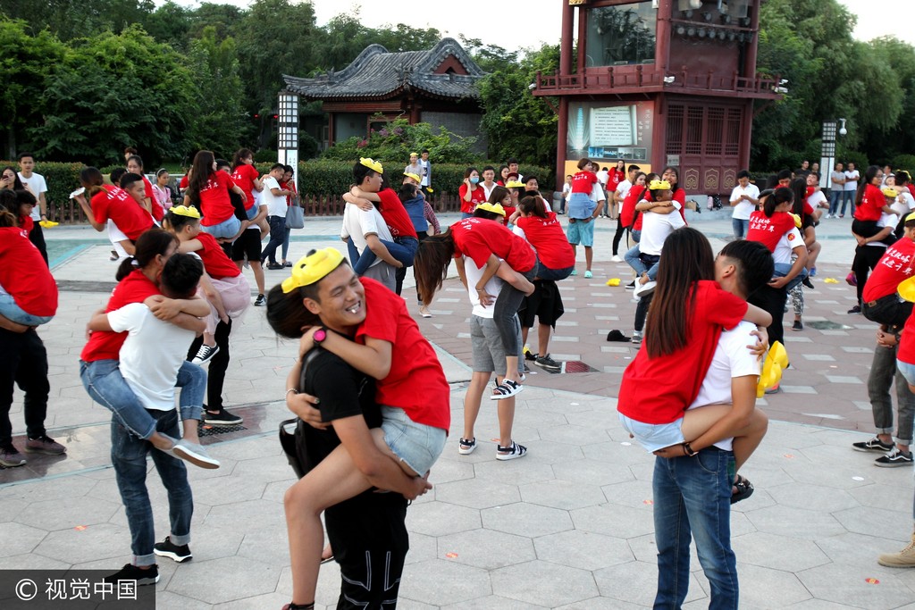 一年一度的七夕情人節在28日登場,除了臉書、Instagram上能看見朋友頻頻放閃外,河南也舉行了77對情侶「熊抱女友」大賽,男友們互相比賽誰能抱起女友最久。