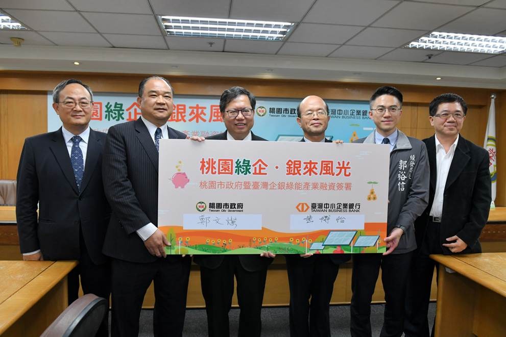為力挺桃園市政府推動綠能政策及順應全球減碳趨勢,台企銀提供200億元的專案資金,提供桃園市客戶購置再生能源,污染防治節約能源所需的資金,促進綠能產業發展,建立低碳經濟型態,達成社會永續發展目標。