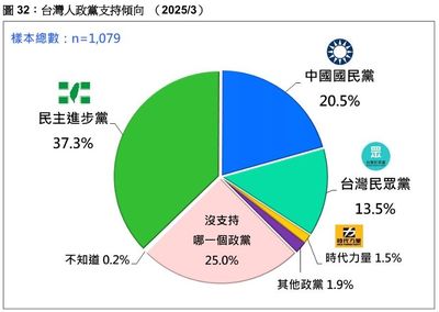 台灣民意基金會今(18日)公布最新民調,國內政黨支持度部分,民進黨37.3%、上升2.2個百分點,國民黨20.5%、下滑0.3個百分點,民眾黨13.5%、維持平盤。台灣民意基金會董事長游盈隆坦言,民進黨不僅沒因國會不斷挫敗而受創,反而因大罷免風起雲湧,凝聚群眾向心力,硬是向上拉抬2.2個百分點,國民黨雖成功結合民眾黨,在國會無往不利,但社會支持度始終不高。 詳全文>>