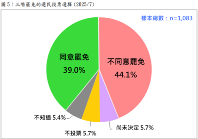《台灣民意基金會》今(11日)公布最新823二波罷免相關民調,結果顯示,全國31.7%贊成大罷免、61.4%不贊成。投票意願方面,全國75.4%會去投票、20.5不會去投票,單看罷免區則是77%會去投票、20.4不會去投票。另外,投票選擇則是全國33.8%會投同意、53.1%會投不同意。罷免區則是32.1%投同意,54.8%不同意罷免。游盈隆強調,宣稱會去投票者高達七成五,意味第二波大罷免投票率仍上看五成以上。而從罷區分析,傾向投不同意罷免者比投同意罷免者多22.7 個百分點。強烈暗示反罷免方將贏得另一次詳全文>>
