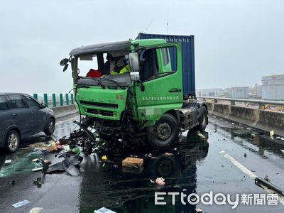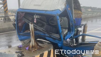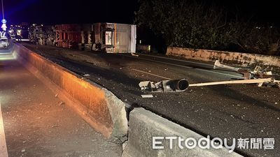 快訊/聯結車台61線自撞護欄!車頭斷裂...駕駛噴飛墜橋命危