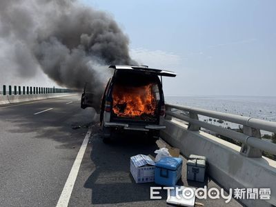 快訊/西濱芳苑路段火燒車 廂型車竄火舌...駕駛急跳車逃生