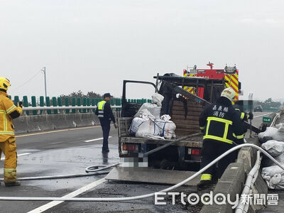 台61線東石鄉路段小貨車突起火 消防獲報到場佈水線搶救