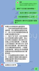 《東森新媒體ETtoday》5日才報導民眾投訴高雄市林園分局處理一起外籍女子被搶奪案,打電話報案,結果員警晚了近40分鐘才到,沒想到同樣延遲的情況又發生了,這次是一起發生在台88上頭的車禍案件,民眾打電話報案,派出所警力晚了50分鐘還看不到人影,警方向民眾解釋是「勤務繁忙」。面對記者求證,林園分局直接搬出「車禍案件處理原則」要記者參考。詳全文>>