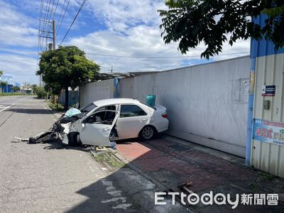 疑恍神釀禍!高雄轎車自撞路樹...保險桿飛30米 車頭「不見了」