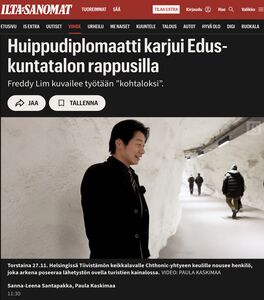 駐芬蘭代表林昶佐上任後,先後登上被稱為芬蘭版時代週刊《Suomen Kuvalehti》、歷史最悠久的報紙《Keskisuomalainen》、黃金時段談話節目《Efter Nio》,以及發行量最大報社「赫爾辛基日報」。近日,林昶佐也登上芬蘭大報Ilta-Sanomat的娛樂版跟政治版位。 詳全文>>