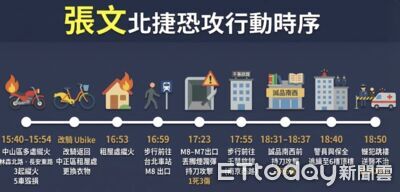 27歲男子張文19日下午起連續縱火,又到台北車站、台北捷運中山站丟擲煙霧彈、持刀殺人。台北市議員簡舒培今(21日)質疑,問題一、照理來說,當嫌犯下午3點多連續縱火燒車時,就應該有民眾通報,警方有沒有掌握資料?接連發生3起縱火燒車事件,警方真的完全沒察覺有異?問題二、嫌犯在台北車站捷運通道犯案後,一路從台北車站走到中山商圈再度犯案,這一段路好歹也要10幾20分鐘,警網竟然都沒有掌握?詳全文>>