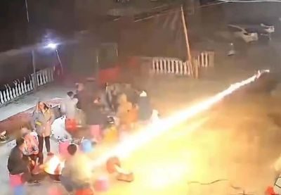 大陸網上近日瘋傳一段凌晨過年的烤肉影片。一群男女坐在戶外圍成兩圈烤肉,交談過程中,還有人大聲唱著歌。隔壁鄰居疑似受不了噪音,竟點起鞭炮,往「目標」方向發射,長達近2分鐘的「驅趕」,讓該群人當場嚇到逃跑。詳全文>>