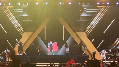 瑪丹娜4日在台北開唱,雖然前面DJ熱場1個小時半,一度讓1萬2千名觀眾不耐,但當她在晚上10點16分登場時,熱力四射的表演折服現場觀眾。一開場她從天而降,穿著改良黑色武士服熱唱《Iconic》,瞬間嗨翻全場。詳全文>>