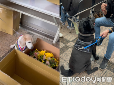 農業部12日舉辦退役工作犬表揚典禮,偵搜犬AJ由原領犬員領養,爸爸特地帶牠從高雄來參加,而檢疫犬Jeff當場展現「職業病」,對著箱子一陣嗅聞,準確地選擇坐在裝有鮮花的紙箱旁,示意媽媽「這裡有問題」,即使退休了還是展現出工作狂性格。詳全文>>