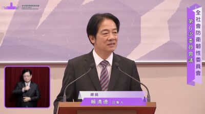 立院藍白黨團23日於立法院程序委員會再度聯手,第四度阻擋8年1.25兆國防特別預算條例付委審查。對此,總統賴清德下午召開全社會防衛韌性委員會議時,談及中國威脅挑戰;他表示,中國對台灣、印太區域的威脅持續加劇,企圖把「民主台灣」變成「中國台灣」,這是對國家主權、國家安全的嚴重威脅,更是對全球民主自由陣營的公然挑釁。 詳全文>>