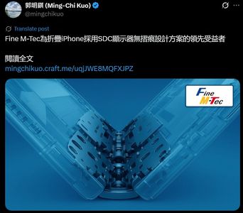 根據《彭博》資深記者古爾曼(Mark Gurman)報導指出,蘋果首款摺疊iPhone預計將於2026年底亮相,市場普遍關注其產品定位與供應鏈布局。同時,知名分析師郭明錤近日透露,韓國精密零組件供應商Fine M-Tec已於2025年7月17日公告,將投入約175億韓元(約新台幣4.3億元),以擴充雷射鑽孔產能,支援未來折疊機市場成長,包括蘋果與三星的需求。詳全文>>