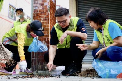鳳凰颱風昨日晚上登陸屏東恆春後,迅速減為熱帶性低氣壓,但仍對台灣部分地區帶來驚人的瞬間降雨,所幸高雄並無傳出重大災情,但高雄三民區仍可見滿地落葉與積水。立委賴瑞隆13日一早換上巡守隊志工背心,與社區巡守隊並肩清掃街道、清除積水容器,帶頭恢復市容。詳全文>>