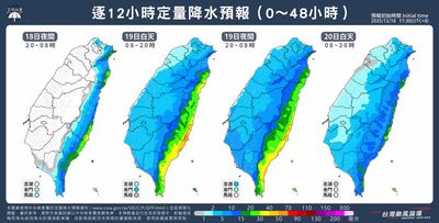 周四全台有雨!中央氣象署預報員鄭傑仁表示,周三東北季風稍增強,周四、周五東北季風或冷氣團影響,預估周四晚上、周五到周六清晨是最低溫時間,中部以北12-14度。詳全文>>