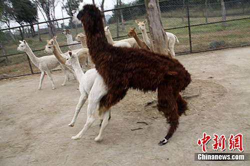 淹城野生動物園原有6隻羊駝,其中有2雄性,是父子倆,而新引進的14隻小羊駝,2公12母。也許是乍一見「老鄉」,羊駝父子倆Hold不住了,立即衝上前,趁工作人員不注意,一隻突然跳到母羊駝的背上,另一隻母羊駝也被撲倒在地,其他母羊駝都嚇得四處逃。