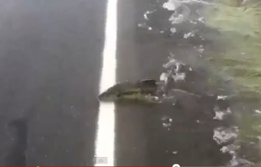 ▼鮭魚逆流產卵,卻搞混跑到積水的公路上。(圖/取自YouTube)