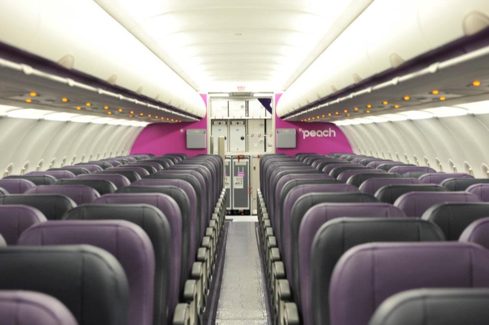 ▲蜜桃航空的機身和機艙都很peach。(圖/取自蜜桃航空臉書)