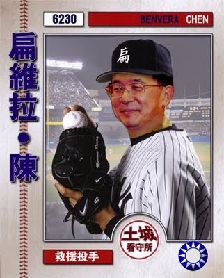 ▲網友KUSO的扁維拉球員卡,過去扁案總能為藍軍的弊案轉移焦點,被網友封為藍軍的最佳救援投手。16日扁維拉又出手批評宇昌案是政治抹黑,希望這次能成為小英的救援投手。(圖/翻攝自網路)