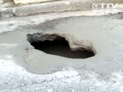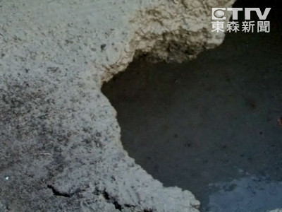 高雄市中正路地下道出口25日下午出現了一個驚人大洞,洞口寬3公尺、深將近2公尺,由於事發地點正好在百貨公司前,車輛往來相當頻繁,現場一度出現大塞車。