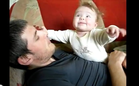▼「飛行北鼻」乘著風,在爸爸的胸前模擬飛行。(圖/取自YouTube)