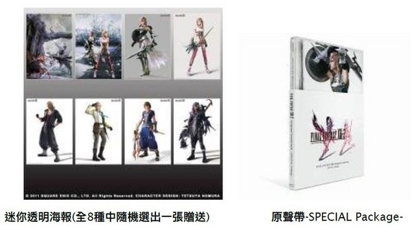 如同先前所報導,《太空戰士XIII-2》繼12月15日在台推出的PS3/Xbox 360日文版之後,已經確認明年的1月31日推出PS3中英文合版與Xbox 360中文版,售價都是1,690元;購買遊戲片還提供一組8張的明信片與「夕風之服」與「勇者之炎」等兩個服裝給玩家下載的初回限定特典,SCET同時發售PS3限定版主機同捆組,除了專用軟件之外還加贈海報((全8種中隨機選出一張贈送)、原聲帶,建議售價為11,280元。