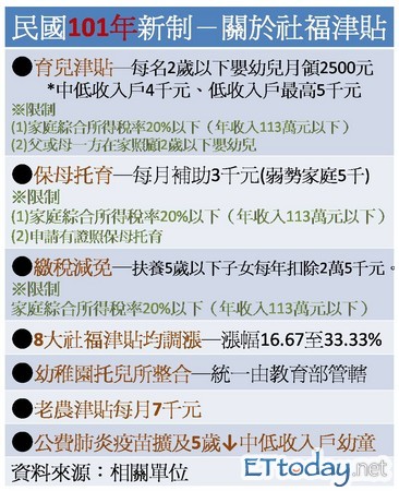 民國101年元旦有多項新制即將上路,包括基本工資調漲、老農津貼提高,以及8項社會福利津貼同步調整等等。除此之外,還有多項與民生相關的政策有改變,關心自身權益和荷包的民眾可多注意。