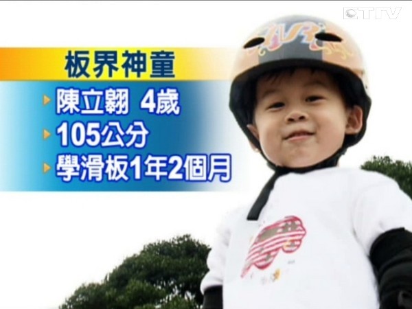 台灣曾經出現一個滑板神童柯家恩,現在已經19歲,還拿下全國冠軍,不過現在出現更小的神童,那就是只有4歲的陳立翱。才4歲就挑戰幾乎垂直的大U台,這可是連很多大人都不敢嘗試,而陳立翱不只敢滑,還要跟滑板界一哥柯家恩PK,年紀雖小但勇氣卻是很大。