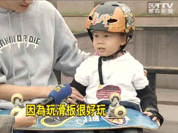 從比個子高3倍的大U台滑向另一關卡,動作迅速、乾淨俐落,你以為這是哪個青少年嗎?其實這個駕馭滑板的是個才4歲,身高僅105公分,學滑板也才1年多的小男生,看他抱著滑板走路都有點吃力,但將滑版踩在腳下時,勇氣、技巧都不輸大人。