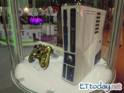 ▲電玩展期間用玻璃櫃鎖著的星際大戰Xbox 360的限定版主機,將在4月3日與《Kinect星際大戰》同步上市,同捆組建議售價為新台幣13,980元。(記者洪聖壹/攝)