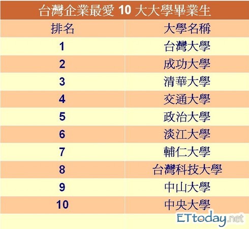 ▲台灣企業最愛10所大學。(製表:ETtoday.net)