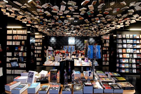4.比利時布魯賽爾(Brussels, Belgium)天花板掛滿出版品的異想書店Cook & Book。