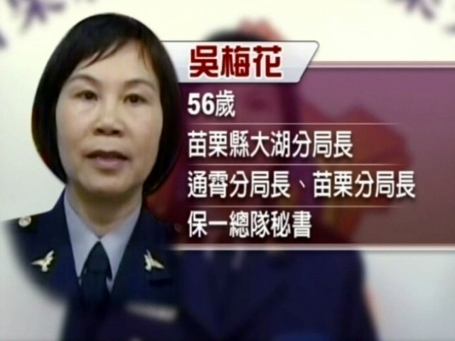 苗栗縣警局苗栗分局長吳梅花日前被調任警政署保一總隊秘書,有人為她叫屈並質疑「政治介入」,還有警眷上網替她抱屈;縣長劉政鴻強調,吳梅花因春節期間交通疏導、群眾事件處理等問題,相關業務無法配合首長,因此才建議中央撤換,「與政治完全無關!」吳梅花在接受媒體訪問時則說,她不太方便說明什麼,非常感謝外界的關心,過去她一直很努力,將來也會繼續努力。