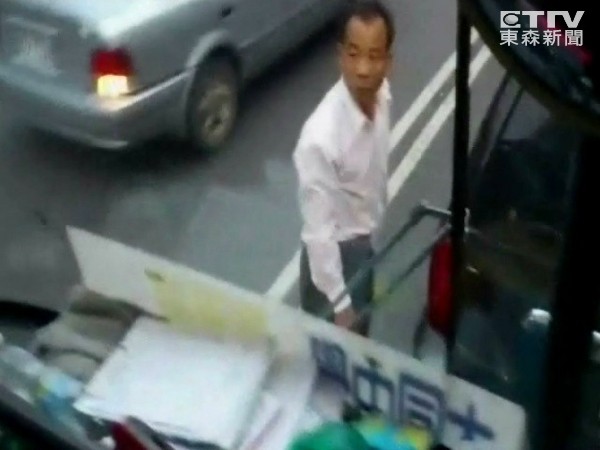 ▲▼林明順當街擋校車咆哮。(圖/東森新聞、ETtoday)