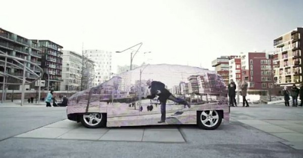 一輛重達數噸的龐然大物,要如何從你我眼前消失?但真實世界中賓士汽車的隱形斗篷卻是真的。賓士汽車的作法是:他們在汽車的左側面鋪滿了LED面版,但汽車的右側面架上一台攝影機,然後將右側拍攝到的畫面,以適當的「觀視距離」投放到左側車體上。如此一來,在右側觀看的人,看到的畫面,就如同車子完全沒有擋到的透明畫面!