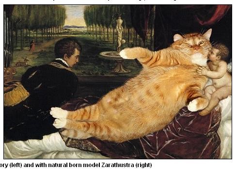 俄羅斯藝術家Svetlana Petrova日前發揮無限創意,把自家的肥貓Zarathustra與多幅世界名畫結合,打造了與眾不同的有趣畫作。除了可以看到Zarathustra被蒙娜麗莎擁入懷裡外,肥貓也變成為名畫《維納斯的誕生》的主角,直挺挺的站在作品中央,展現了另類的風情。