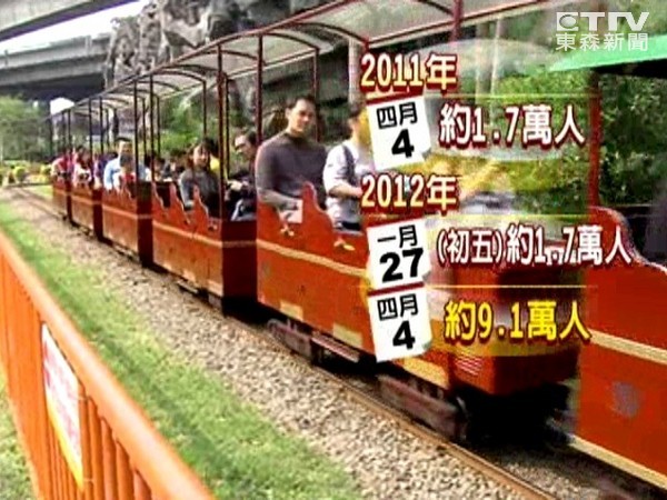 今天(4日)是清明節國定假日,同時也是一年一度的兒童節,台北市兒童育樂中心(兒童樂園)特別提供本日限定優惠,只要一位大人帶一名12歲以下的小朋友,即可免費入園,在這晴朗的天氣裡,果然吸引大批民眾湧入,遊園人數破紀錄,根據園方統計超過9.1萬人次,幾乎是平常一個月的總來客數。