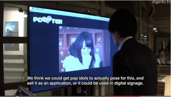 宅男嘟嘴想對螢幕裡的美眉一親芳澤,這不再只是天馬行空的妄想,歐賣尬!隨著宅男的臉越靠越近,螢幕裡的美眉竟然閉上眼、嘟嘴,甚至還露出嬌羞的表情,這是日本慶應大學研究團隊開發出來的互動海報接吻裝置。