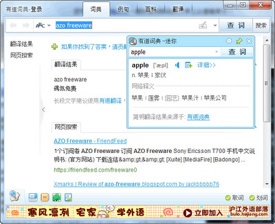 游標取詞準確的免費翻譯軟體 - 有道詞典,是由網易有道信息技術(北京)有限公司於2007年推出的一款免費翻譯軟體,支援中英日韓法文雙向翻譯,優點是:閱讀英文文章時,只要將游標移到要翻譯的文字上方,就會自動彈出中文翻譯,就連軟體介面上的英文單字也可以取詞!也具有準確的發音功能,圖片取詞功能也相當奇妙,只要圖片中的英文單字沒有經過太多的美工處理,一樣能夠取詞翻譯!缺點是:只有簡體中文介面。(阿榮)