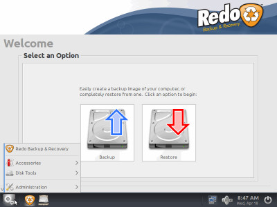 Redo Backup and Recovery is so simple that anyone can use it. It is the easiest, most complete disaster recovery solution available. It allows bare-metal restore. Bare metal restore means that even if your hard drive melts or gets completely erased by a virus, you can have a completely-functional system back up and running in as little as 10 minutes.