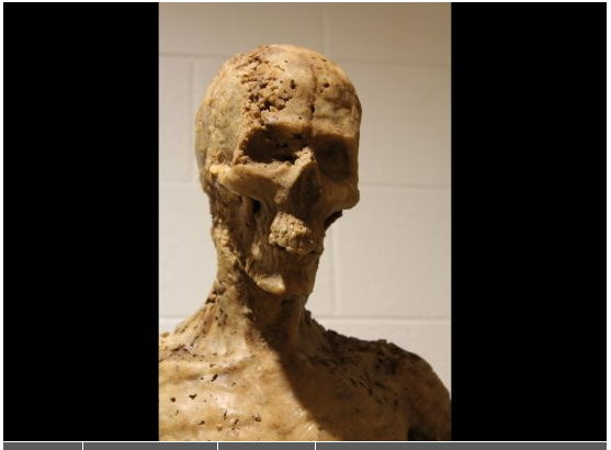 坎伯向媒體透露製作的過程與細節:「首先我讓食物完全乾掉,然後把它放進攪拌器裡攪拌。接下來我再混合樹脂,再倒進一個事先準備好的、木乃伊形狀的塑膠模具裡。最後一部分是使用黏著劑把各部分黏好,再清潔整件 『雕塑品』就行了。」