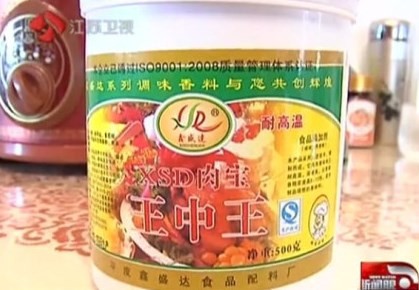 江蘇南京出現一種神祕添加劑,名為「肉寶王中王」,只要在做紅燒肉時加入,就會有很特殊的香味,讓人越吃越想吃,比罌粟更容易上癮。有學者表示,這是一種成份十分複雜的混合添加劑,對人體有害。