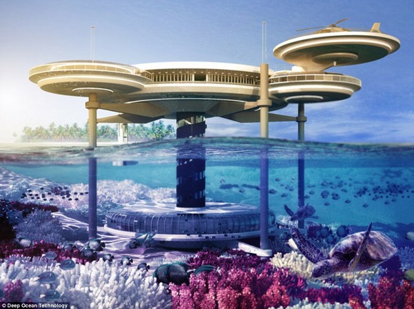 該飯店的外形就像是一艘太空船,水底部分位於水底10公尺處,跟水上的另一個圓盤外形、狀似飛碟的建築物相通。 該飯店有21間客房,旁邊則是泡在水裡的潛水中心和一間酒吧。一個特別的照明系統將照亮外面的動植物。如果遇到危險,水底下的房間將能浮上水面。