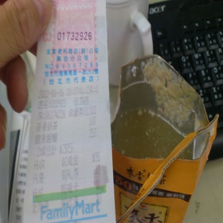 鄭小姐6月6日在大安區的全家便利超商購買10 元的鋁箔包麥香奶茶,喝下第一口覺得非常酸,當下傻住還猶豫到底要不要吞下去時,一陣作嘔讓她想吐,趕緊吐在另一個杯子裡。