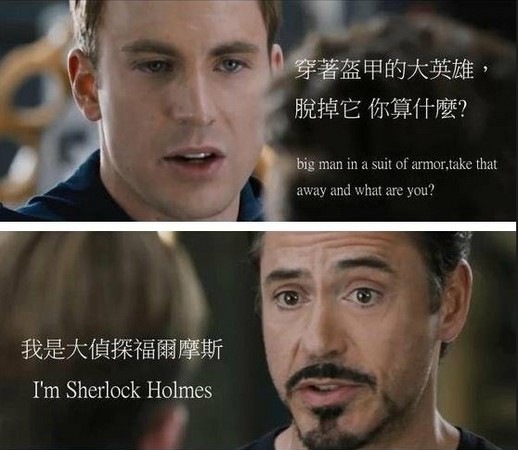 ▲美國隊長(上)與鋼鐵人(下)觀念不同,在《復仇者聯盟》的經典質疑台詞也被惡搞。(圖/取自網路)