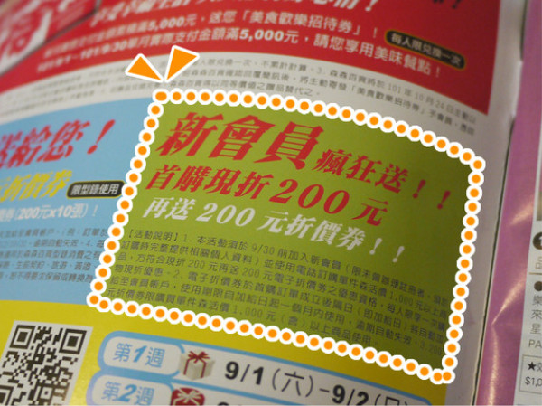 才剛打開型錄立馬出現大嬸最愛的貪小便宜♥♥♥現在新會員的首購居然還有優惠200元,馬上省下了2天的餐費